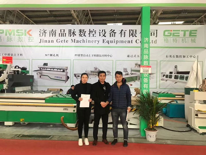 2018年品脈數控參展北京建博會取得圓滿成功,現場簽訂河北滄州崔總、遼寧錦州王總、聊城張總、河北廊坊吉總、吉林長春趙總、湖南岳陽朱總,河北保定丁總、德州王總、石家莊張總、李總,四川達州劉總,安徽阜陽王總,河南信陽周總,西安邢總,青島李總展會現場訂購品脈數控板式家具數控生產線設備。