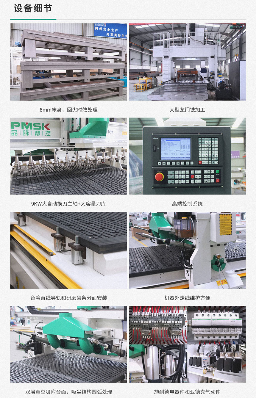 ◆9.0KW大功率主軸,適合高速切割下料,大容量直排刀庫節(jié)省換刀操作時間。