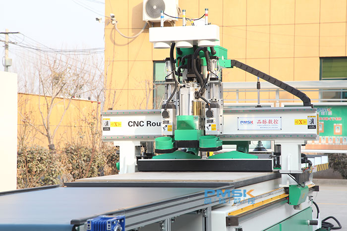 數控開料機,將原有兩個小功率鉆孔主軸用進口打孔排鉆包替換掉,這樣開料機在打孔加工過程中排鉆刀不停的更換,甚至可以多個排鉆刀同時打孔,開料機從板材一端到板材另一端,行走一遍即可加工完成板面所有孔位,效率及精準度方面要勝過四工序開料機。同樣都是配套側面打孔的側孔機在加工櫥柜衣柜的情況下,一臺雙工序排鉆開料機相比四工序型,平均每天8小時可以多加工20張板左右,多投入一點,短時間內即可收回設備差價成本,不用頻繁的更新新增開料設備,性價比更合適。