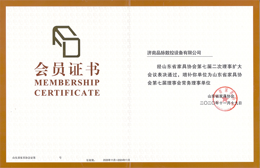 山東濟南品脈數控榮獲山東家具協會第七屆理事會常務理事單位