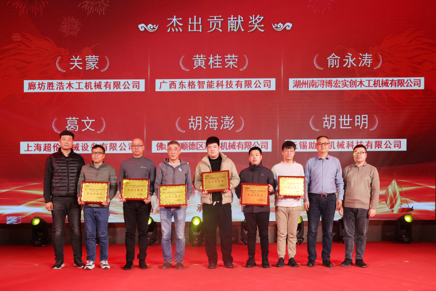 中國木材與木制品流通協會全屋定制分會執行秘書長、山東省家具協會定制家居專委會秘書長徐寶傳,山東省家具協會副秘書長王騰,會員部副主任呂磊頒獎