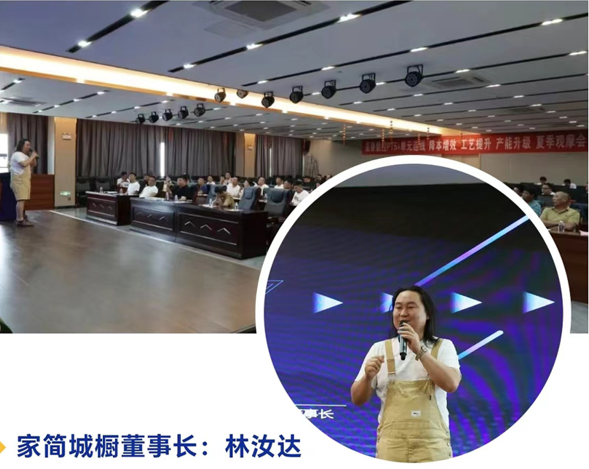山東家簡城櫥全屋定制有限公司董事長林汝達做生產自動化及高定工藝專題分享。并介紹了品脈單元體方案的實際使用經驗。