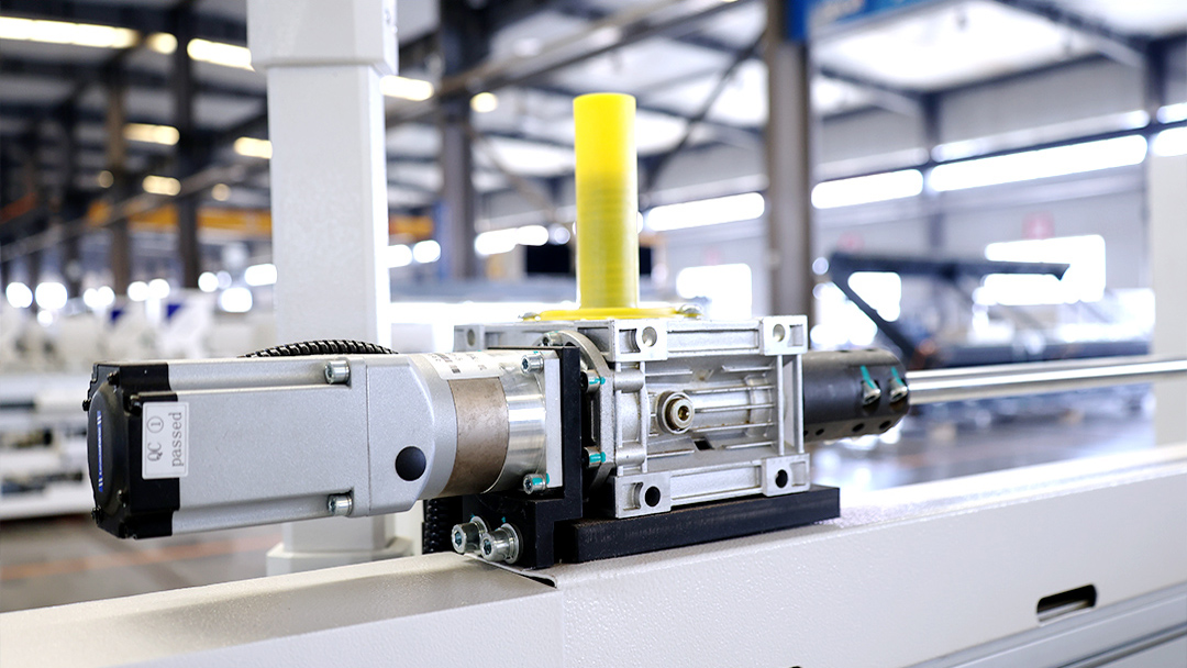 齊頭電機可45°轉動,實現垂直邊和斜邊齊頭,伺服電機精準控制,響應速度快,切割精準,切割斷面平滑,無毛刺。