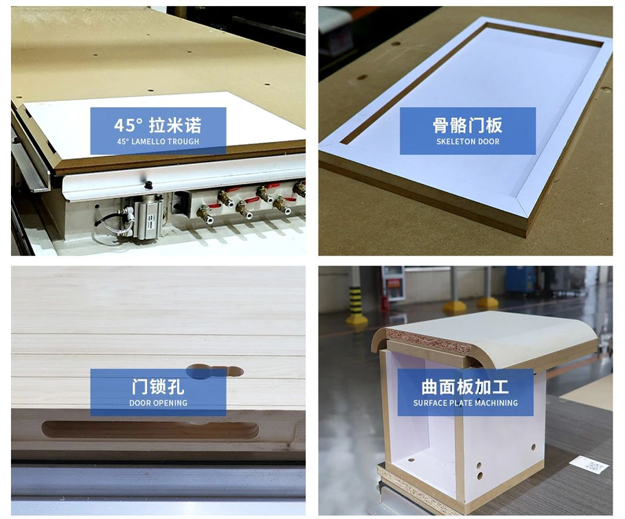 自主開發設計的門墻柜CAM軟件,可滿足三合一孔、垂直孔、榫槽、側槽、拉直器、拉手、圓弧板、骨骼門等工藝,也可以自主設計拉手工藝,功能全面,實用性強。